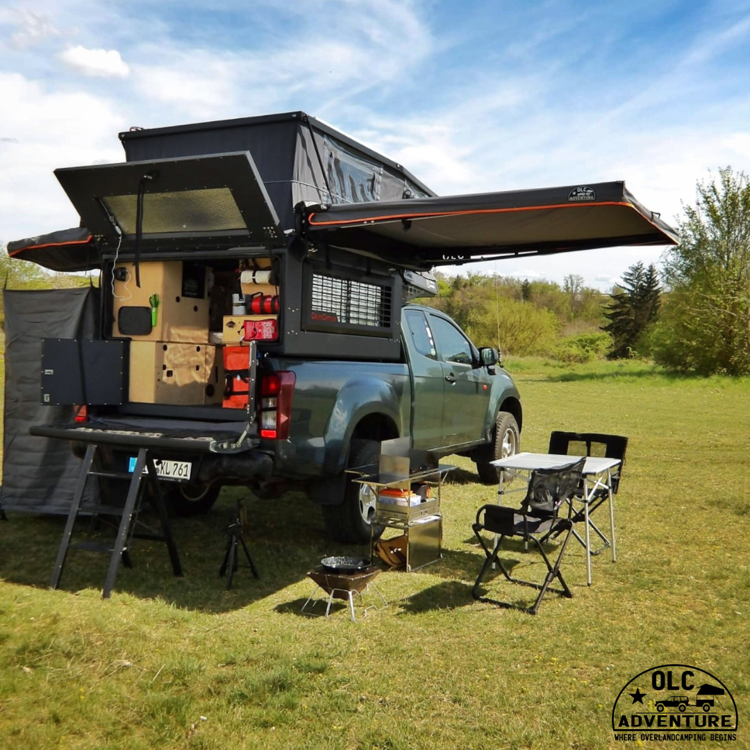 Grade bei Fahrzeugen mit großer Heckklappe (wo eine 270° Markise nicht funktioniert) bietet sich diese Variante an.